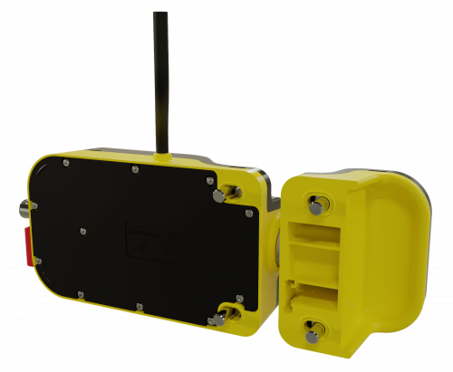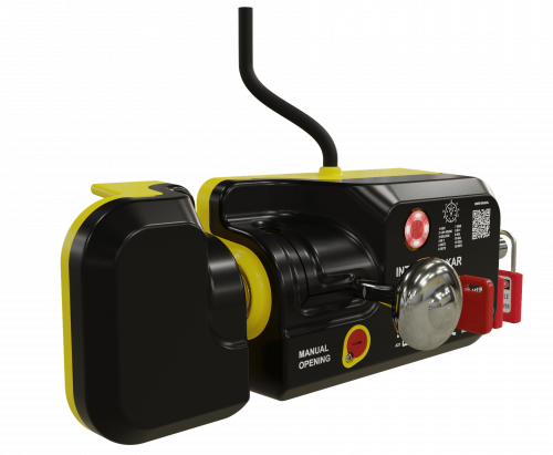 Otwierane przy pomocy kodowanego klucza RFID. Urządzenie spełnia normy bezpieczeństwa: ISO 13849-1 2013, EN 62061/A2 2015, EN 60947-5-3 2014, ISO 14119 2013.